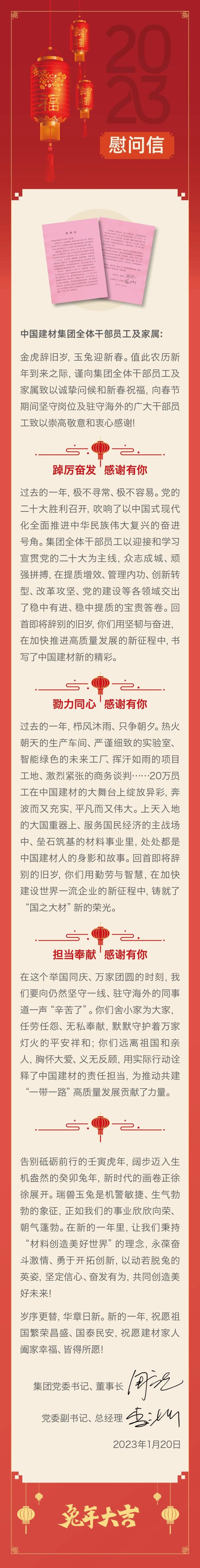 致中國建材集團全體干部員工及家屬的一封信